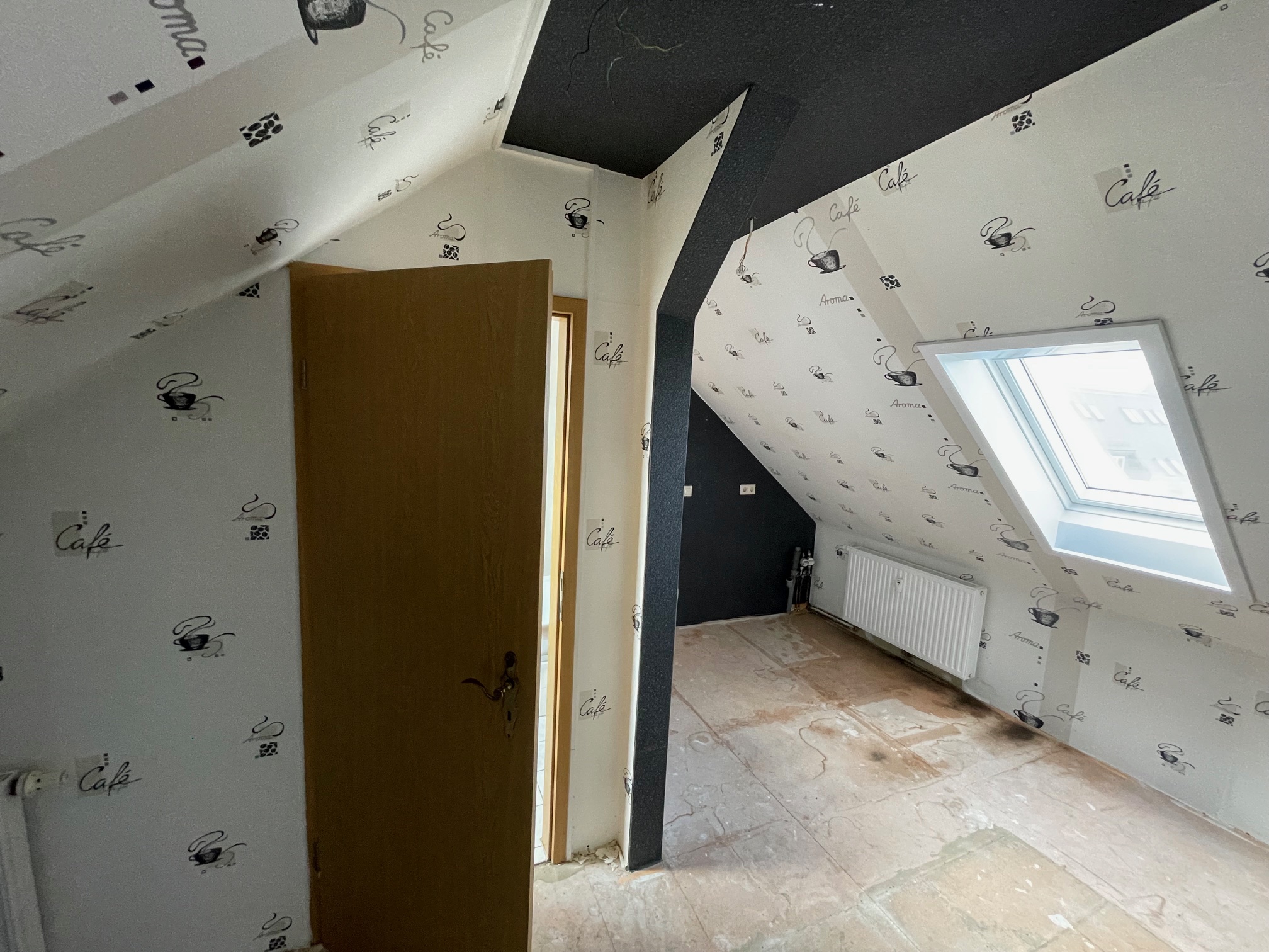 Kleiner Wohnraum, viel Nutzfläche, durch die Dachschrägen