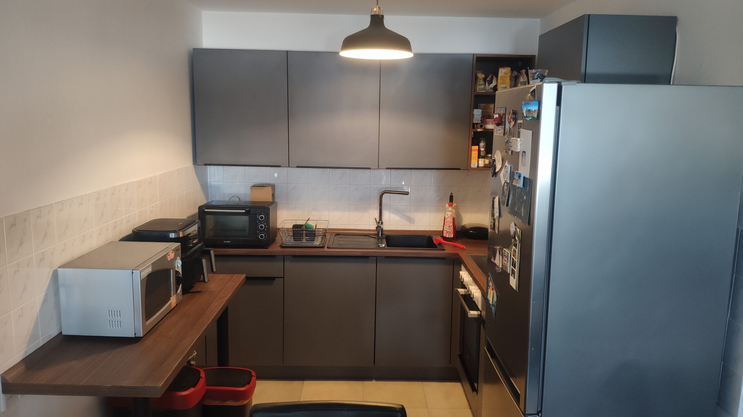 Die Einbauküche kann vom Vormieter abgekauft werden, wenn du es möchtest.