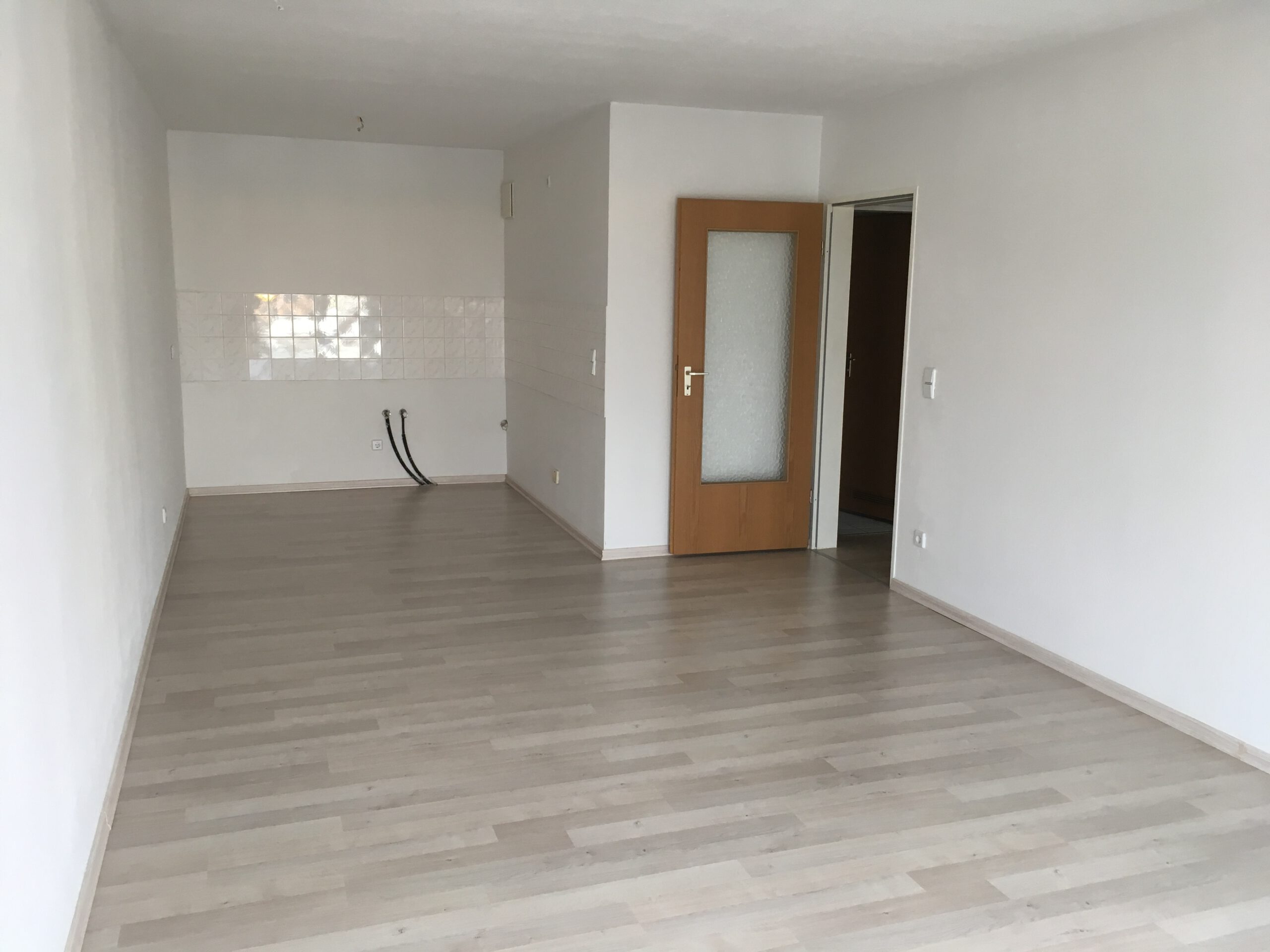 In der gesamten Wohnung wurde neues Laminat verlegt. Die Einbauküche ist offen zum Wohnzimmer.Das Bad ist gefliest.