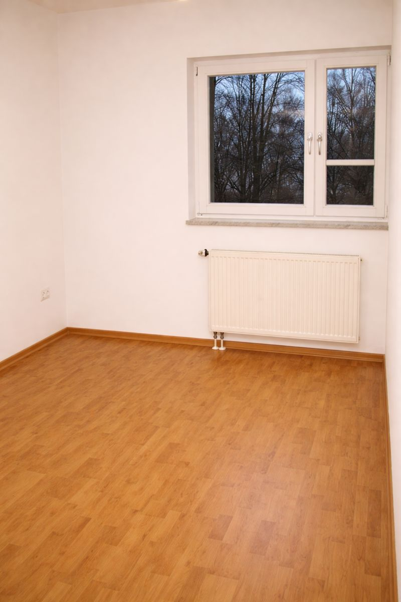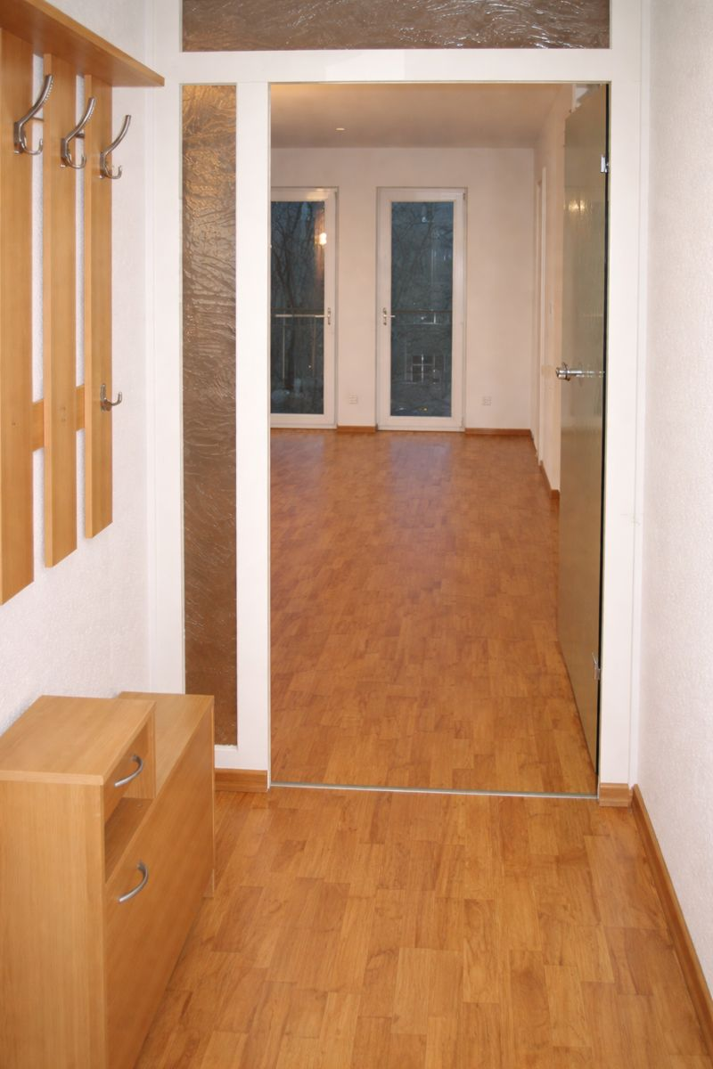 In allen Wohnräumen liegt Laminat. Das Bad ist auf der Hofseite gelegen und verfügt über eine Badewanne und Fenster. Die Wände und der Boden ist gefliest. Die Küche ist zum Wohnzimmer durch eine Tür getrennt, kann aber einfach entfernt werden. Der Balkon ist mit Blick auf den Schlossteich. Ein Tiefgaragenplatz gehört zur Wohnung. Ein Fahrradraum befindet sich rückseitig am Garten. Im großen und schön angelegtem Garten kann man im Sommer feiern und Schatten genießen. Die Waschmaschine kann im Keller angeschlossen werden. Im Flur befindet sich ein großer Einbauschrank. Alle Fenster sind mit elektrischen Außenrollos versehen.