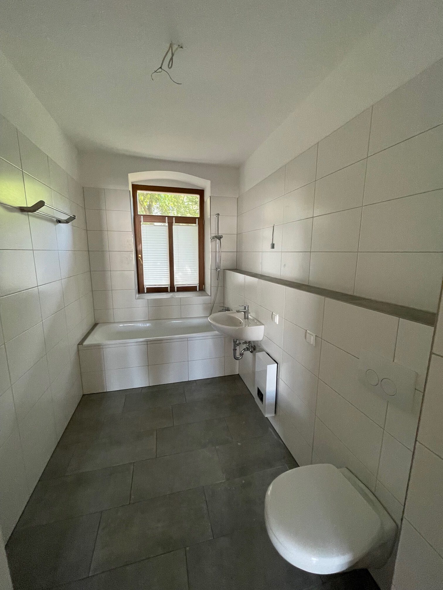 -Tageslichtbad mit Badewanne, neu gefliest, neue Innentüren